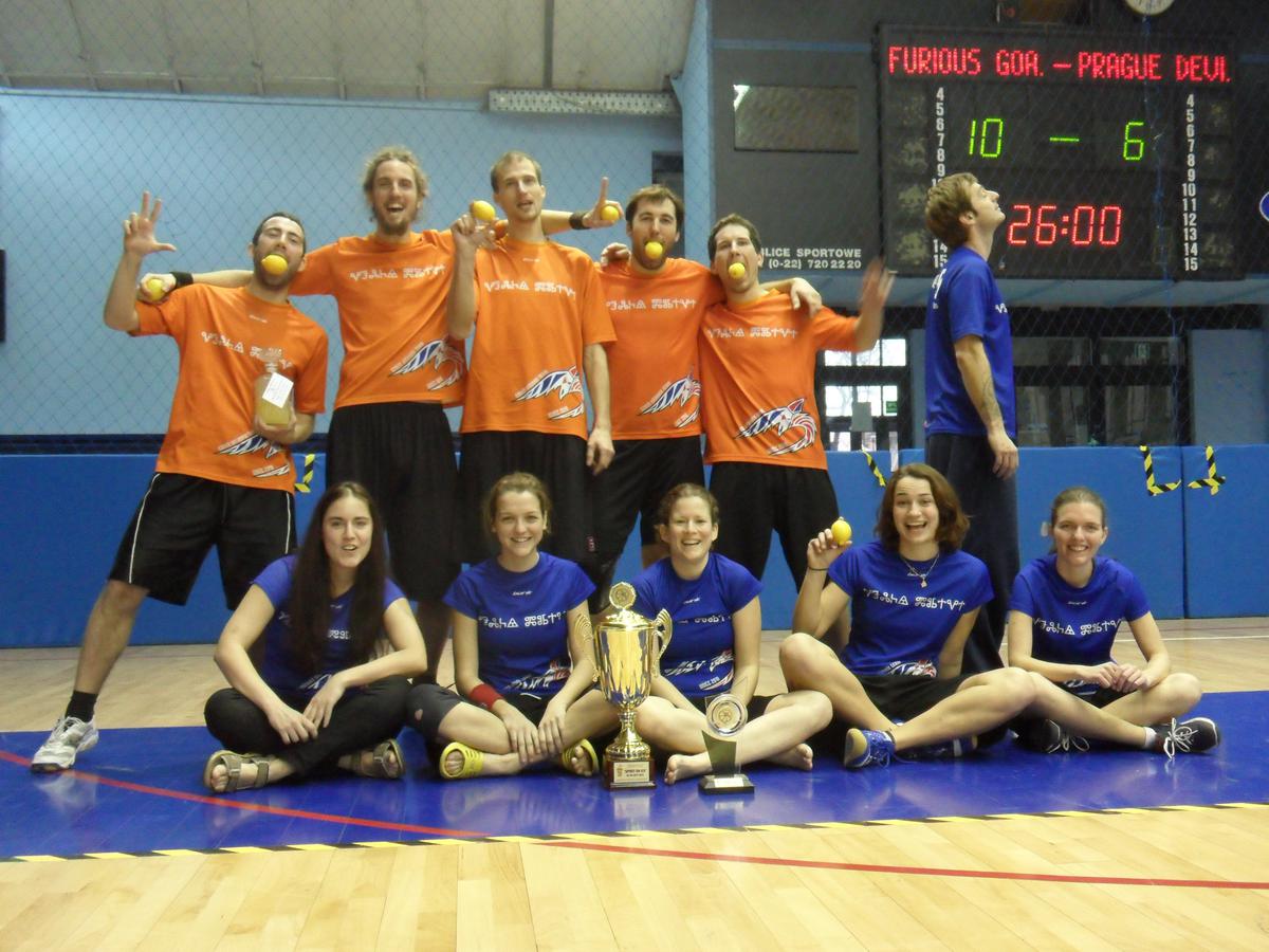O víkendu 19. - 20. února jsme se coby Velká Morava vydali na mixový turnaj do Polska. Čekalo na nás dalších 9 týmů z Polska, ČR, Maďarska, Slovenska a Velké Británie, ale až na sobotní ranní zakolísání (no jo, na welcome párty bylo pivo zdarma) hrála Morava výborně! Finále nám nakonec v bitvě s Prague Devils uniklo pouze o jediný bod, tak jsme celí nažhavení vlétli aspoň do boje o třetí místo a "zenoví hráči" z Maďarska neměli šanci :o)) Kromě toho byl Miguel zvolen nejlepším mužským hráčem turnaje (Most Valuable Player).